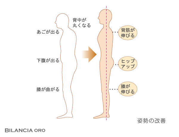 ビランチャ オーロは、装着するだけで背筋・膝の裏を伸ばし、姿勢を良くする手助けをいたします。